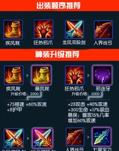 韩信的爆发能力非常强大,而影刃作为一件攻击装备,能够给他提供额外的攻击力和暴击效果。选择影刃作为第一件装备,可以让韩信在游戏初期就拥有更高的输出能力,轻松击败敌人。